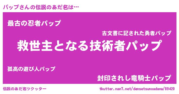 | ヒーロー風カッコイイあだ名 | 『慈愛の使者パップ』『仮面パッダー』 |