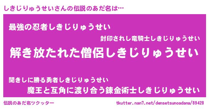 | ポケモン風あだ名 | 『ヒシキジリュウセイ』『シキジダネ』 |