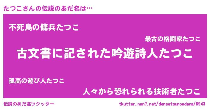 | 意味不明あだ名 | 『自称たつこ』『住所不定無職たつこ(8歳)』 |