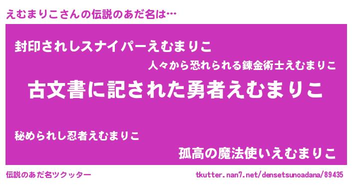 | 意味不明あだ名 | 『住所不定無職えむまりこ(91歳)』 |