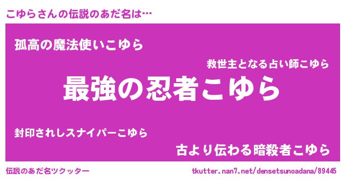| 男性向けラノベタイトル風あだ名 | 『この素晴らしい世界にこゆらを!』 |