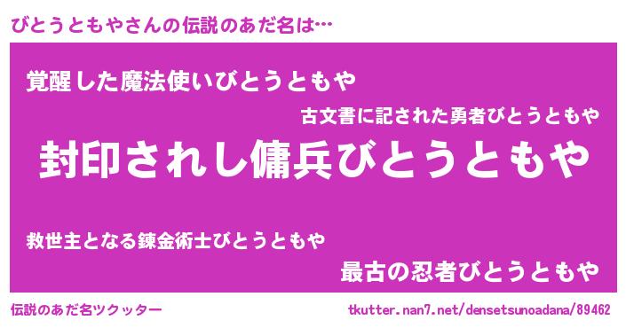 | ポケモン風あだ名 | 『ビトチュウ』『ヒビトウトモヤ』 |