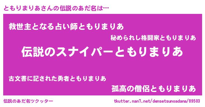 | 意味不明あだ名 | 『自称ともりまりあ』 |