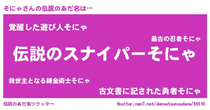 | 胡散臭い通販商品みたいなあだ名 | 『必ず成功する霊験あらたかなお札…その名も「そにゃ」』 |
