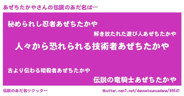 | ヒーロー風カッコイイあだ名 | 『正義の使者あぜちたかや』 |