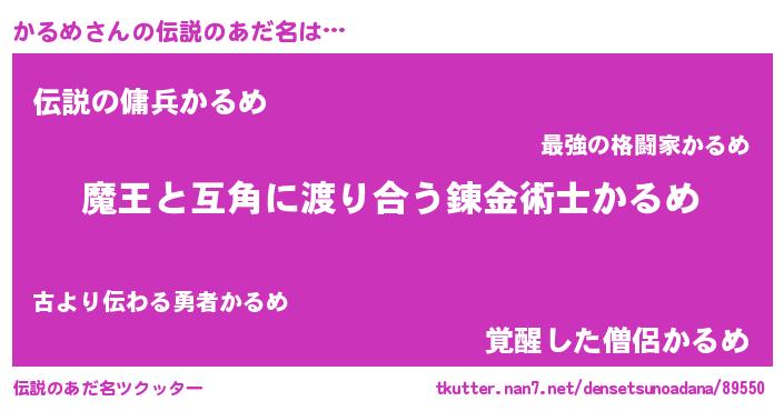 | 女子向けラノベタイトル風あだ名 | 『かるめ恋絵巻』『かるめ姫と円卓の騎士』 |