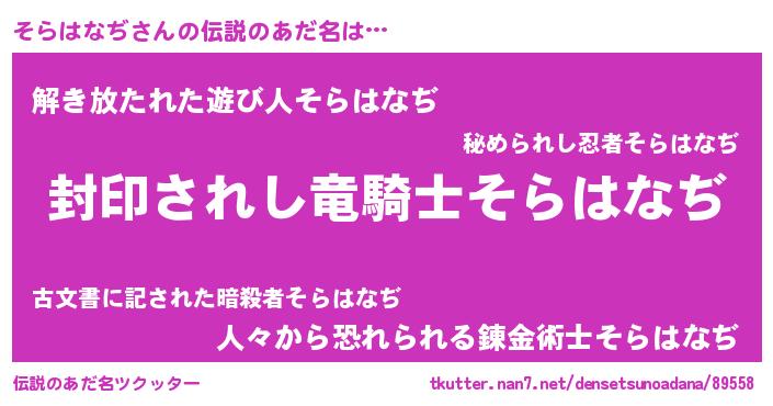 | 意味不明あだ名 | 『ペロリンそらはなぢ』『自称そらはなぢ』 |