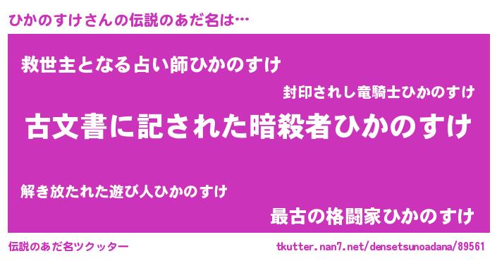| 意味不明あだ名 | 『ニラ科ひかのすけ属』『自称ひかのすけ』 |