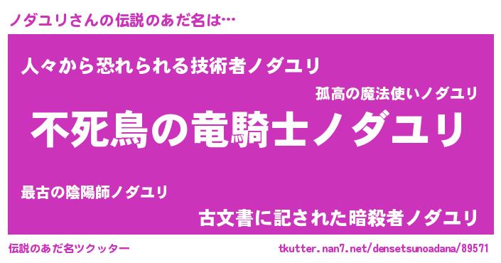 | 意味不明あだ名 | 『ペロリンノダユリ』『自称ノダユリ』 |