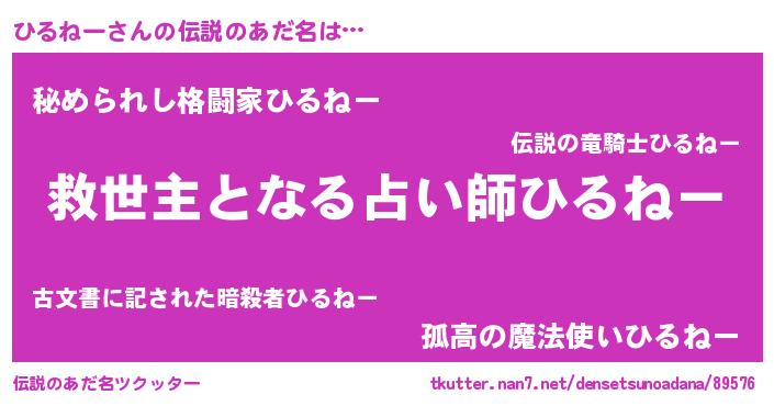 | ヘコむあだ名 | 『酢こんぶ』『ひるを』『ひるふぇ~』 |