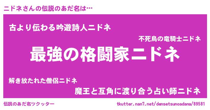 | ファンタジー風あだ名 | 『ゼニドトゥ』『エターナルニドネー』 |