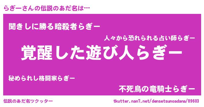 | 意味不明あだ名 | 『とにかく怪しいらぎー』『自称らぎー』 |