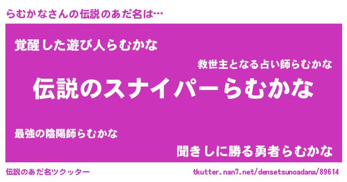 | 意味不明あだ名 | 『ペロリンらむかな』『自称らむかな』 |