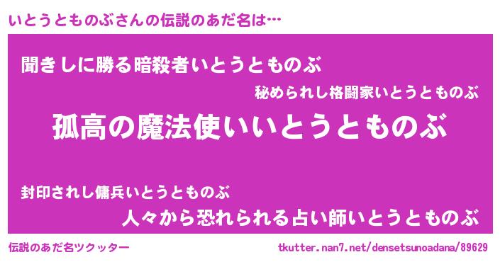 | 意味不明あだ名 | 『住所不定無職いとうとものぶ(2歳)』 |