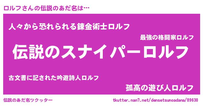| 男性向けラノベタイトル風あだ名 | 『ロルフの憂鬱』『魔弾の王とロルフ』 |