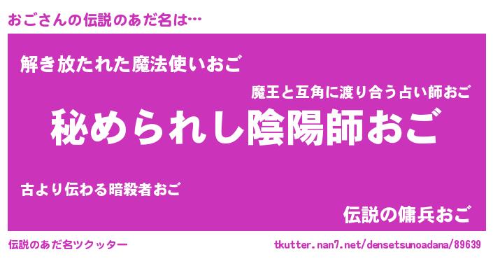 | 女子向けラノベタイトル風あだ名 | 『おごの雑貨屋さん』『死神おごの再婚』 |