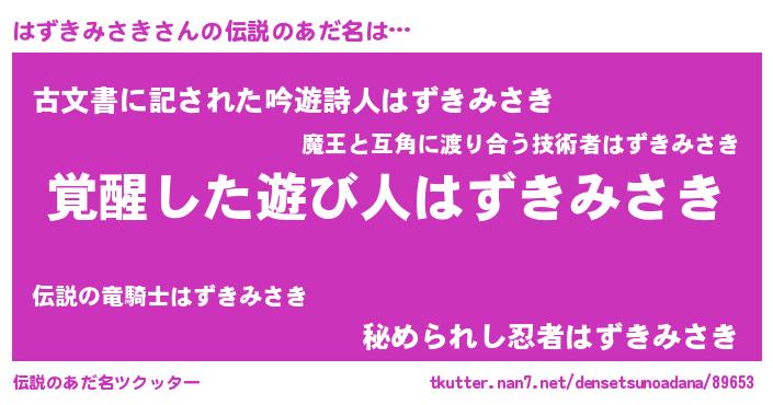 | 意味不明あだ名 | 『自称はずきみさき』 |