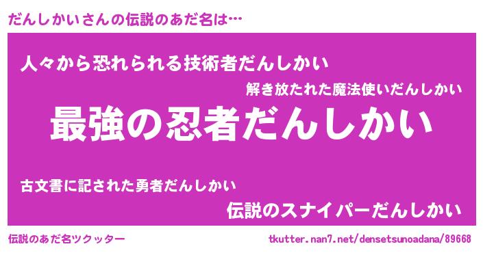 | 意味不明あだ名 | 『住所不定無職だんしかい(68歳)』 |