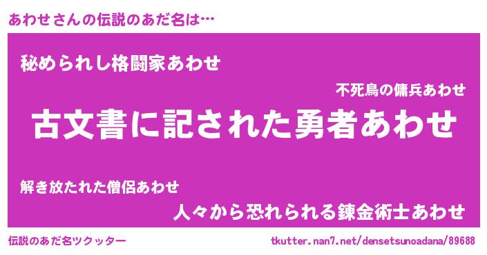 | ファンタジー風あだ名 | 『アワディッシュ』『エターナルアワセー』 |