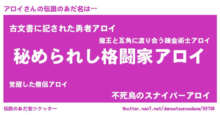 | 男性向けラノベタイトル風あだ名 | 『アロイスレイヤー』『アロイの憂鬱』 |
