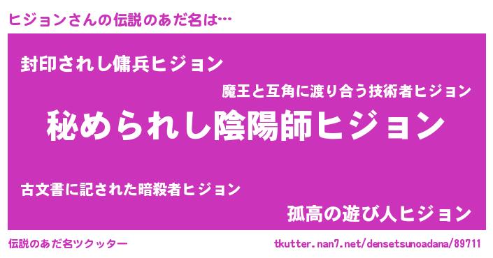| 2回繰り返すあだ名 | 『ヒヒジジ』『ヒジヒジ』『おやおや』 |