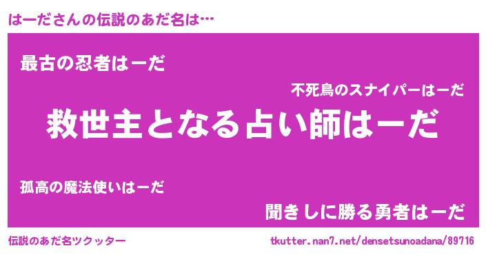 | ヒーロー風カッコイイあだ名 | 『天空の使者はーだ』『仮面ハーダー』 |