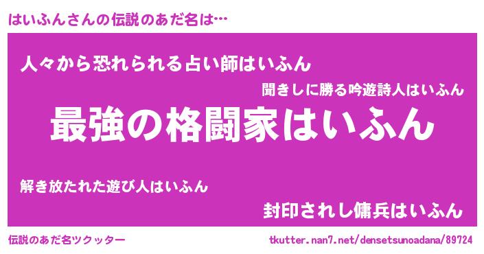 | ヒーロー風カッコイイあだ名 | 『ウルトラはいふんマン』『ネオハイフン』 |