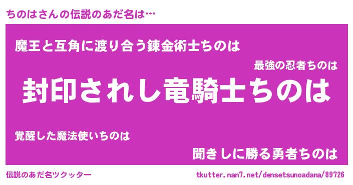 | 胡散臭い通販商品みたいなあだ名 | 『億万長者になれるブレスレット…その名も「ちのは」』 |