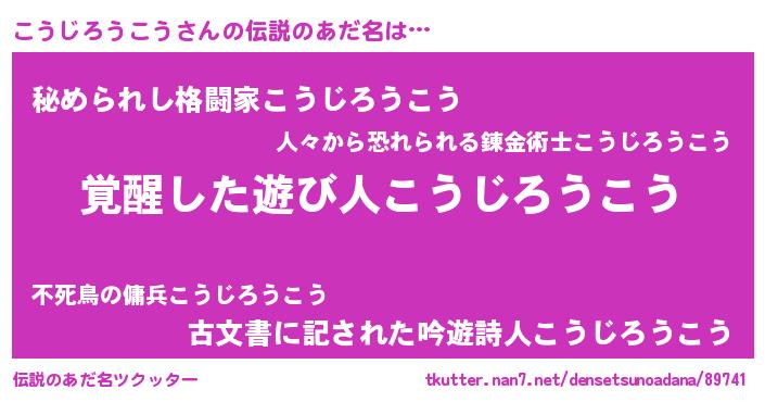 | 意味不明あだ名 | 『住所不定無職こうじろうこう(84歳)』 |
