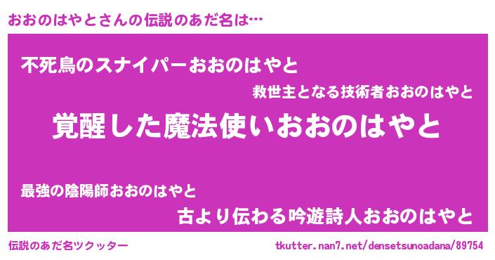 | 男性向けラノベタイトル風あだ名 | 『おおのはやとの嫁は女の子じゃないと思った?』 |