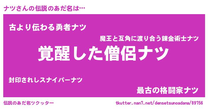 | ヘコむあだ名 | 『ナツっ子』『ナツ(小並感)』 |