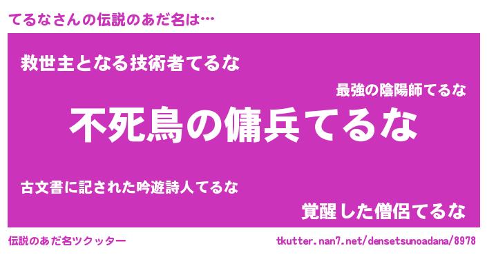 | 意味不明あだ名 | 『住所不定無職てるな(59歳)』 |