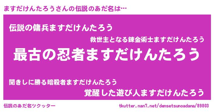 | ファンタジー風あだ名 | 『エターナルマスダケンタロウー』 |