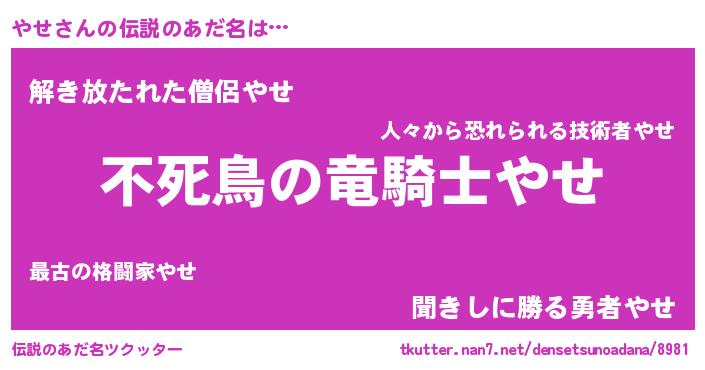 ポケモン風あだ名 | 『ヤセキング』『ヤセチュウ』 |