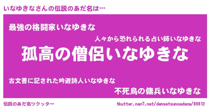 | 男性向けラノベタイトル風あだ名 | 『ダンジョンにいなゆきなを求めるのは間違っているだろうか』 |