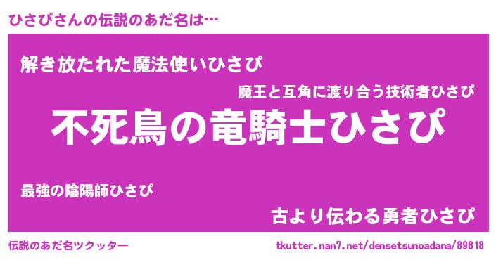 | ヒーロー風カッコイイあだ名 | 『スーパーヒサピ』『暗黒騎士ヒサ』 |