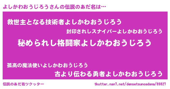 | ファンタジー風あだ名 | 『エターナルヨシカワオウジロウー』 |