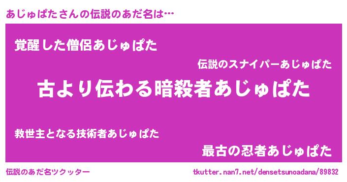 | 男性向けラノベタイトル風あだ名 | 『転生したらあじゅぱただった件』 |