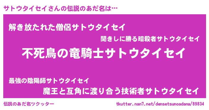 | ポケモン風あだ名 | 『サトチュウ』『ヒサトウタイセイ』 |