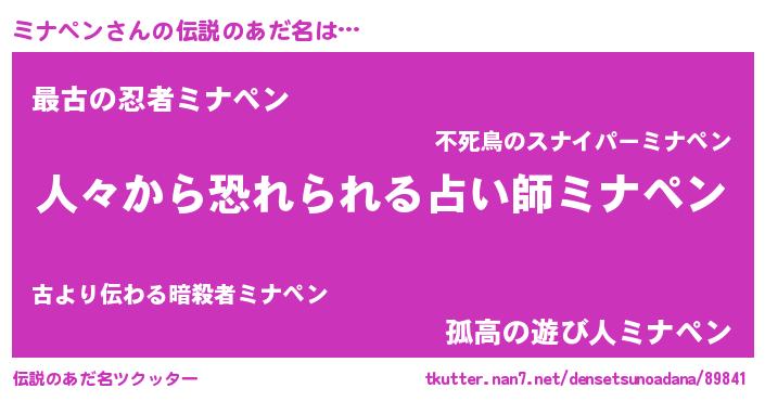 | ヒーロー風カッコイイあだ名 | 『正義の使者ミナペン』『仮面ミナダー』 |