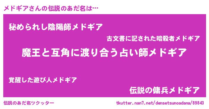 | 男性向けラノベタイトル風あだ名 | 『おまえをオタクにしてやるから、俺をメドギアにしてくれ! 』 |