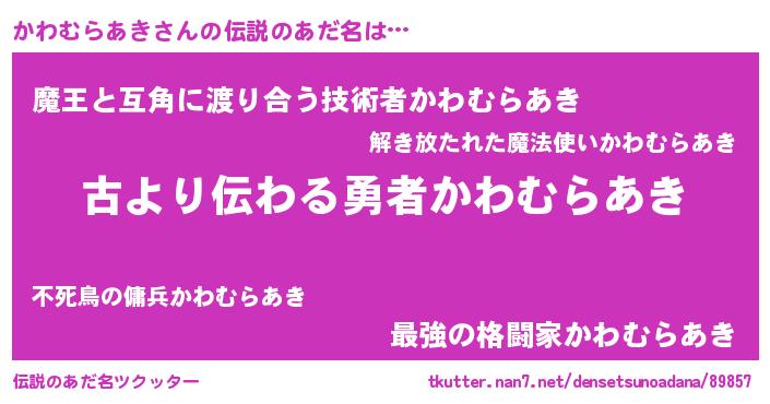 | 意味不明あだ名 | 『永久保存かわむらあき』 |