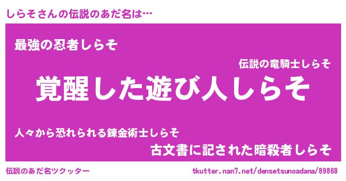 | 意味不明あだ名 | 『住所不定無職しらそ(79歳)』『自称しらそ』 |