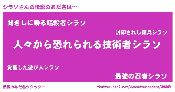 | 男性向けラノベタイトル風あだ名 | 『おまえをオタクにしてやるから、俺をシラソにしてくれ! 』 |