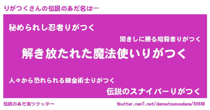 | 男性向けラノベタイトル風あだ名 | 『りがつくに滅ぼされるだけの簡単なお仕事です』 |