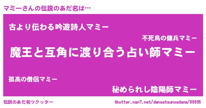 | 女子向けラノベタイトル風あだ名 | 『闇のマミー』『マミー恋絵巻』 |