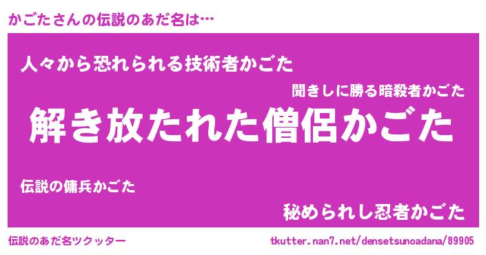 | 意味不明あだ名 | 『とにかく怪しいかごた』『自称かごた』 |