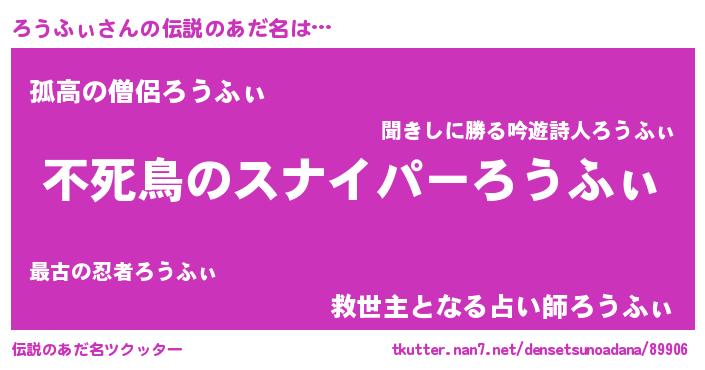 | 胡散臭い通販商品みたいなあだ名 | 『モテモテ間違いなし霊験あらたかなお札…その名も「ろうふぃ」』 |