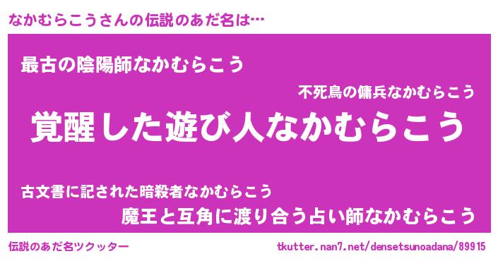 | 男性向けラノベタイトル風あだ名 | 『なかむらこうの嫁は女の子じゃないと思った?』 |