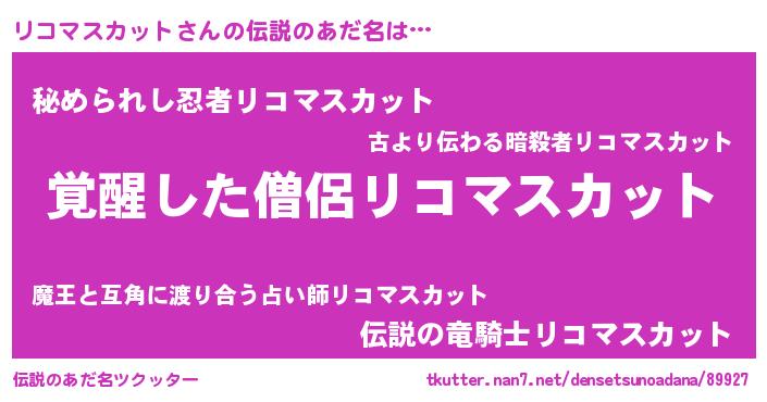 | 男性向けラノベタイトル風あだ名 | 『リコマスカットの嫁は女の子じゃないと思った?』 |